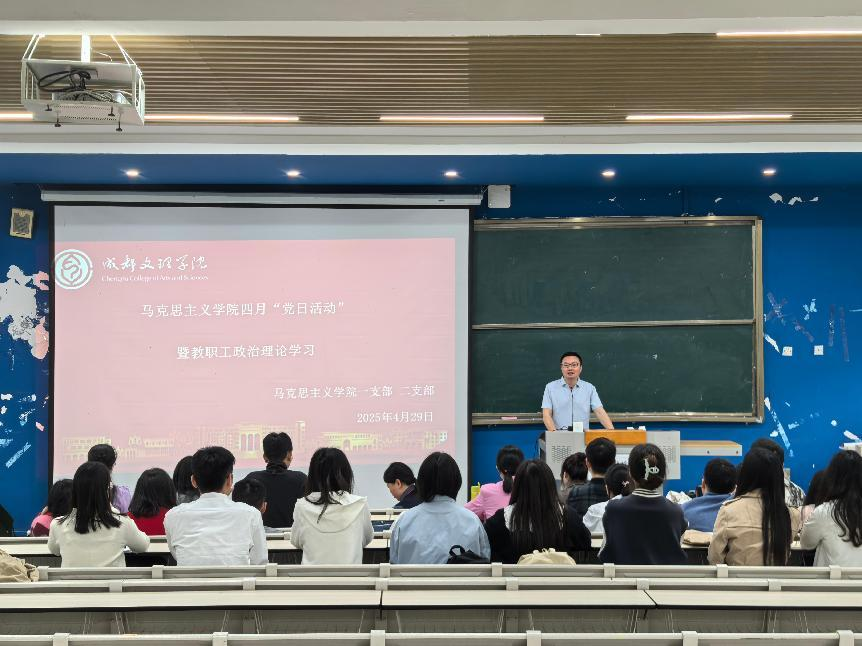 2025年4月29日中午,马克思主义学院一支部、二支部全体党员在主教楼C114按照学校党委要求开展四月主题党日活动暨教职工政治理论学习会议。会议由党总支书记古威主持。