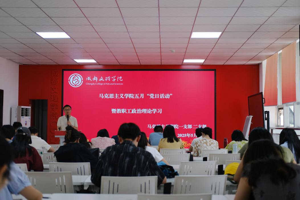 2025年5月21日下午1点,马克思主义学院一支部、二支部全体党员在四楼党员活动中心按照学校党委要求开展五月主题党日活动暨教职工政治理论学习会议。会议由党总支书记古威主持。