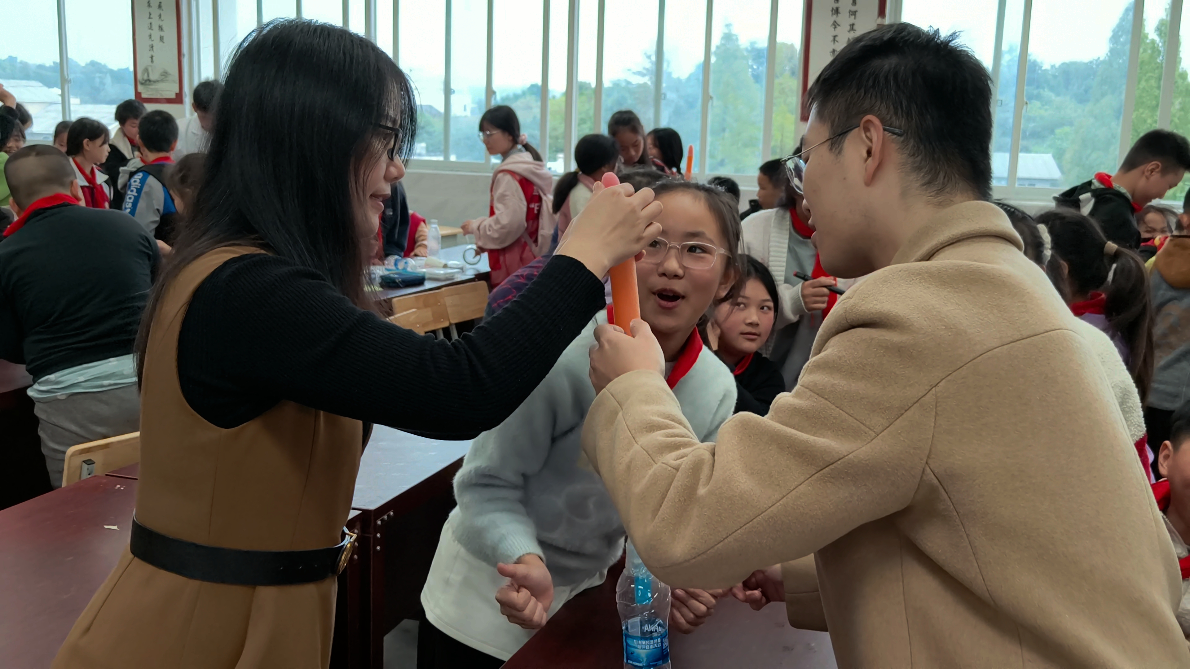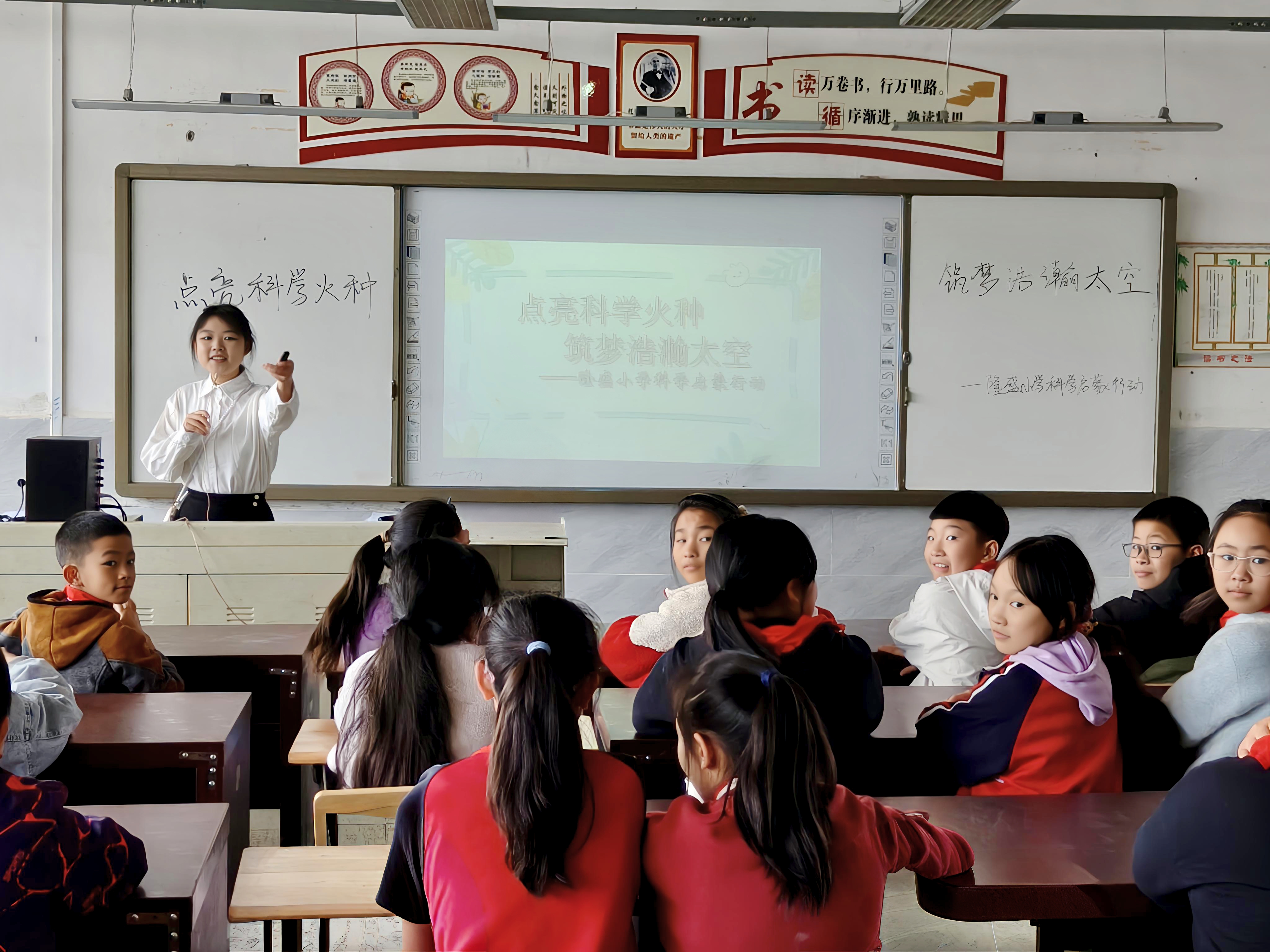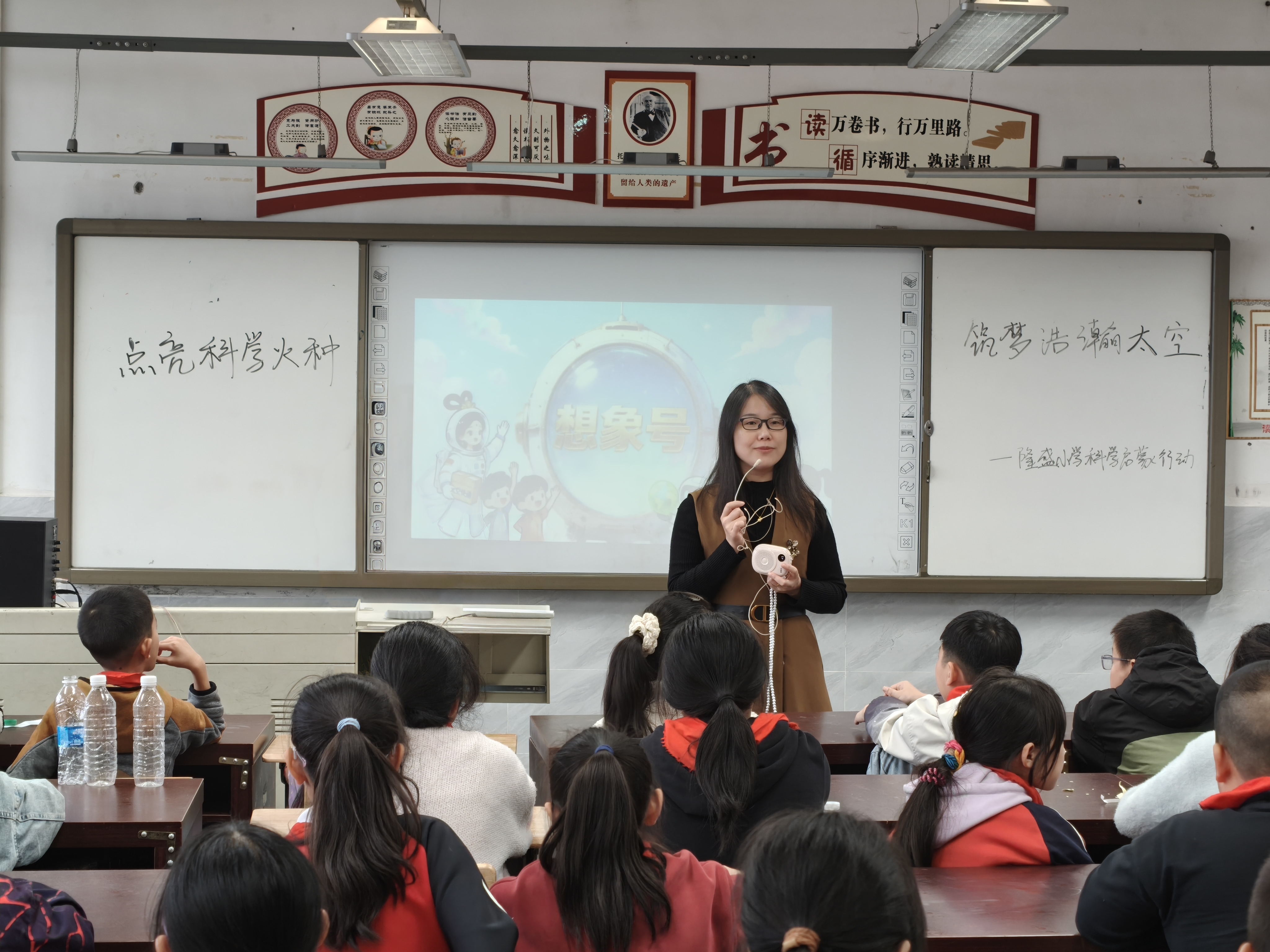 为响应国家科技强国号召,弘扬科学家精神,11月14日,我院师生志愿服务队走进成都市金堂县隆盛小学,开展“点亮科学火种,筑梦浩瀚太空”科技送教活动。思想政治教育系主任柴续续、青年骨干教师曾彦锦带领全体志愿队同学参与其中,以“宣讲+实践+宣誓”的形式,为同学们带来一场兼具知识性与趣味性的科学启蒙体验。