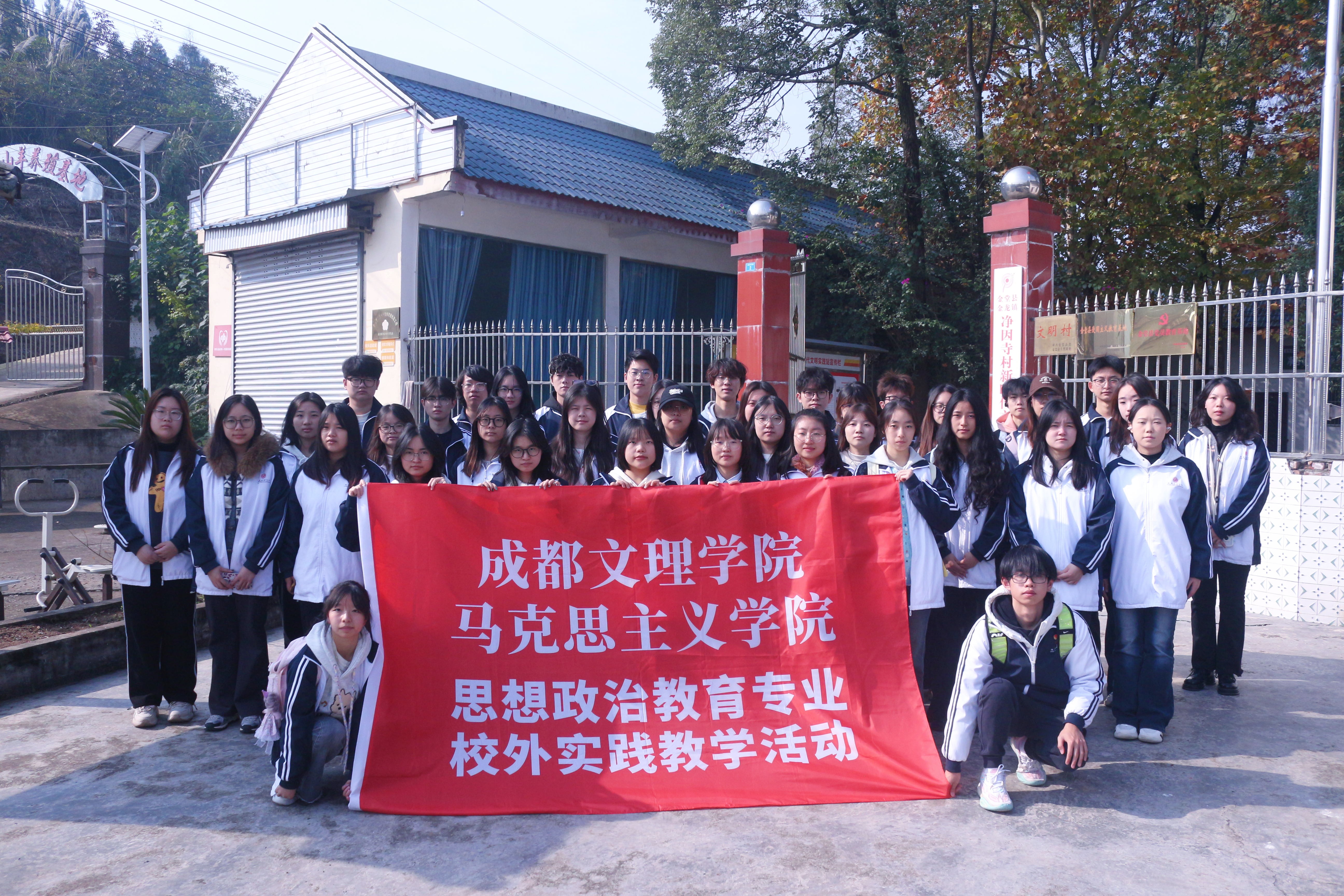 为深入贯彻落实习近平总书记关于思政课建设的重要指示批示精神,开展“四立”思政育人体系,打造“双向融合,并举发展”应用型人才培养模式,切实强化学生的理想信念教育,全面提升学生的专业素养,2025年11月23日,我院组织2024级思想政治教育专业全体学生,前往金堂县星光·1953 红色教育基地及金龙镇净因寺村开展教育见习活动。此次活动旨在通过沉浸式实践教学,传承红色文化,筑牢育人根基。