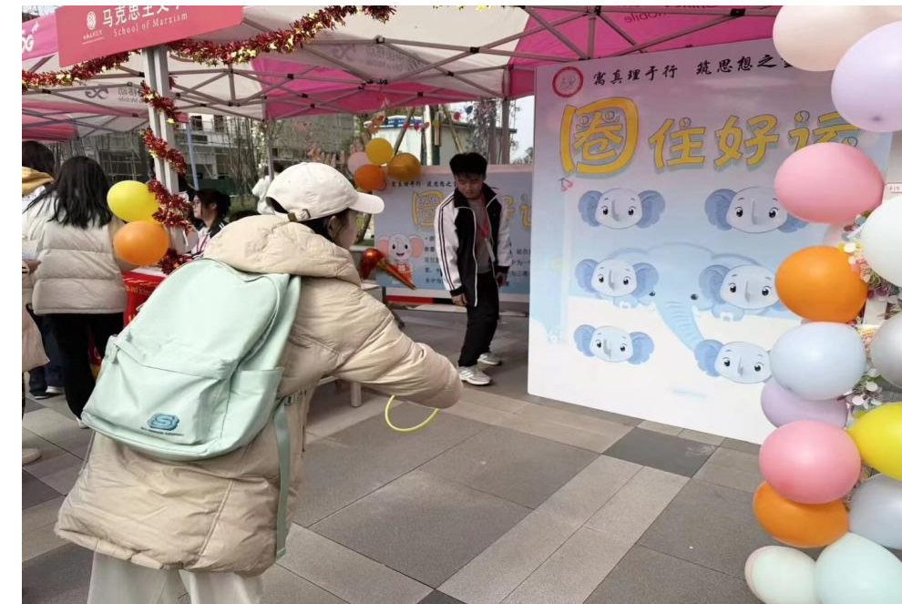 本次游园会紧扣“寓真理于行,筑思想之室”主题,围绕“圈住好运”这一方案设计了兼具趣味性与教育意义的特色互动项目。现场同学们积极参与,反响热烈。