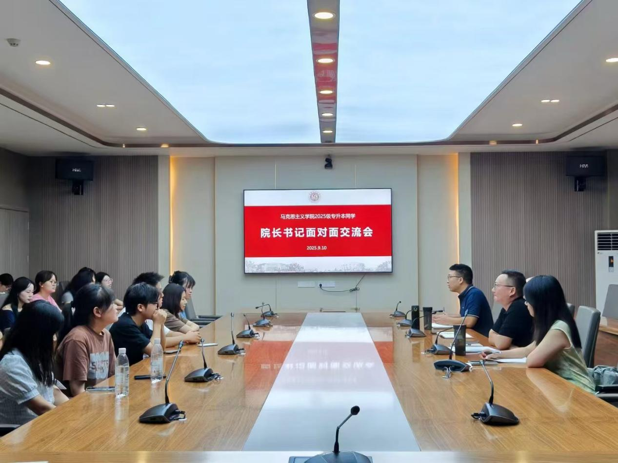 为帮助2025级专升本各位同学更快适应学院新生活,搭建同学们与学院深入交流的平台,倾听学生心声,助力更好成长,9月10日,我院于行政楼第二会议室召开2025级专升本新生院长书记面对面交流会。马克思主义学院院长夏冰,学院党总支书记古威,学院党总支副书记兼学工办主任袁久斌,思想政治教育系主任柴续续出席会议,2025级专升本全体新生参加,会议由袁久斌主持。