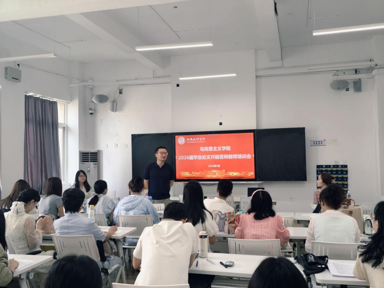 答辩开始前,思想政治教育系主任柴续续面向全体答辩教师组织开展了专题培训,就答辩流程、时间安排等相关要求作出详细说明。学校党委委员、学院党总支书记古威对答辩纪律提出明确要求,确保答辩程序规范严谨。学院院长夏冰针对评分标准等关键内容进行了重申与强调,为后续工作的规范开展筑牢基础。