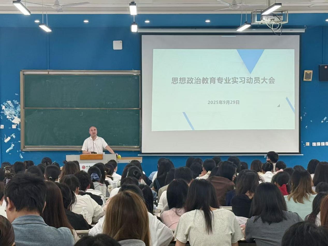 为帮助学生明确实习目标,顺利完成实习各项内容,我院于9月29日在主教学楼D214召开实习动员会。院长夏冰、党总支书记古威、党总支副书记兼学工办主任袁久斌及实习指导老师,2026届全体毕业生参加会议。