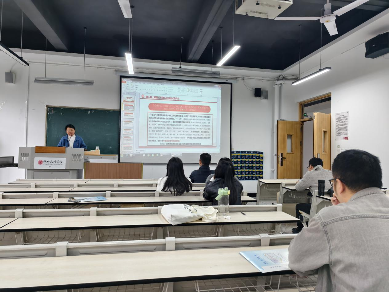“磨课”活动上两位青年教师分别就围绕“将‘二十届四中全会精神’融入《中国近现代史纲要》课程”这一磨课主题进行了讲授展示。首先,陈果老师通过结合自身教学实际,从“坚持以经济建设为中心”这一根本遵循切入,聚焦二十届四中全会提出的“建设现代化产业体系、培育新质生产力”等核心经济部署,阐述了如何将全会精神与纲要课中“现代化建设历程”章节衔接,通过对比“十四五”成就与“十五五”规划,让政策内涵在历史脉络中具象落地。随后,耿雪老师将党的二十届四中全会精神融入纲要课第十章第三节第五目“中国式现代化的战略安排”的教学中,引导学生深刻把握“社会主义现代化是一个阶梯式、渐进式不断发展进步的历史进程”的核心要义。从改革开放后邓小平提出“三步走”战略构想,到新“三步走”战略,到两个一百年奋斗目标,到党的二十大明确全面建成社会主义现代化强国“分两步走”的战略部署,正是阶梯式发展的生动注脚。从“十四五”时期的坚实积累到“十五五”时期的全面发力,中国式现代化的每一步推进都源于对历史进程的准确把握,彰显了中国共产党接续奋斗的使命担当。