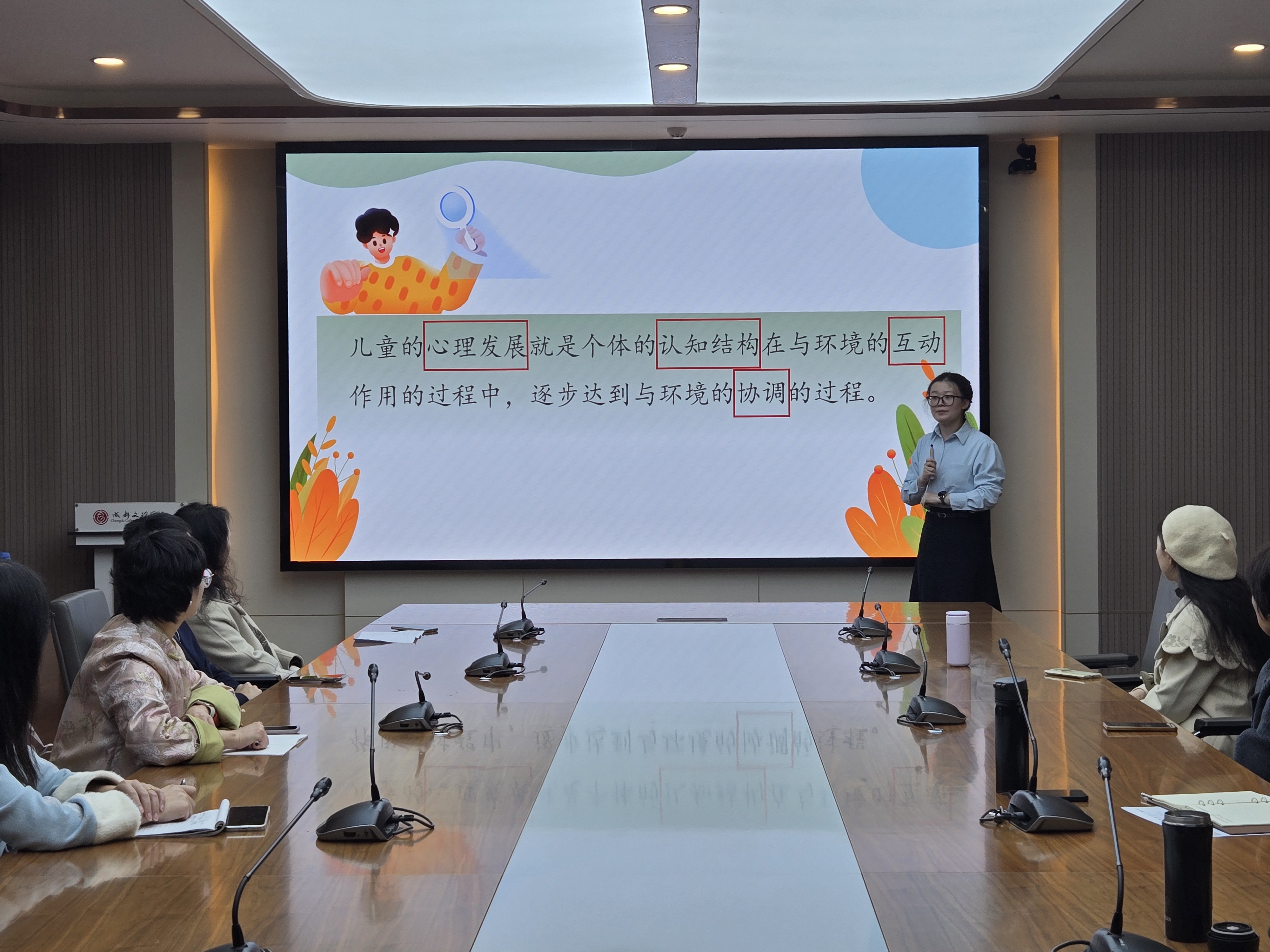 本次公开课由祁彦含老师主讲,授课题目为《建构中的认知:皮亚杰理论的核心概念》。祁彦含老师在刚刚过去的成都文理学院第十七届青年教师讲课比赛中荣获二等奖,此次公开课带来的正是其参赛课程内容。课堂上,祁老师以鲜活的教育案例引入,通过生动的语言和清晰的逻辑,深入讲解了皮亚杰的“图式”“同化”“顺应”“平衡”等核心概念,并结合教育心理学的教学实例,引导教师们思考学生认知发展的阶段性与教学方法的契合。整堂课内容系统、语言生动,课堂节奏张弛有度,充分展示了青年教师的教学风采与教育智慧。