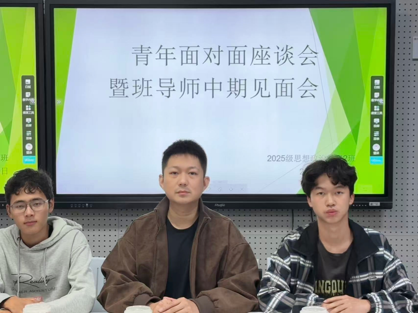 近日,我院2025级思想政治教育二班,召开“班导师与学生面对面座谈会”。学院班导师李志远和2025级思想政治教育二班全体同学参加,大家共话成长、共谋发展。