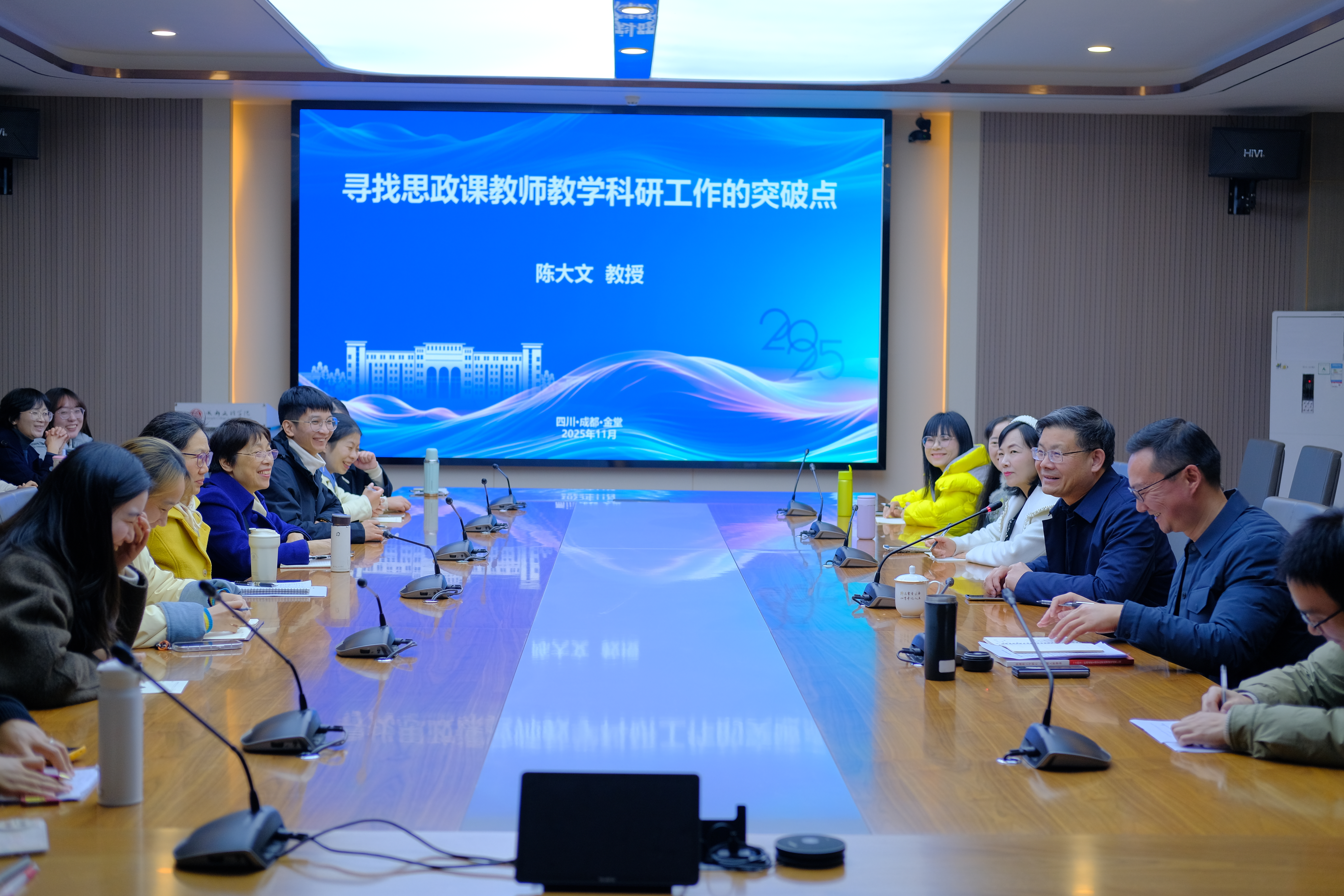 11月27日下午,国家“万人计划”教学名师、教育部“思想道德与法治”分教学指导委员会副主任委员、同济大学马克思主义学院陈大文教授应邀在第二会议室为马克思主义学院教师作题为“寻找思政课教师教学科研工作的突破点”的专题讲座,同时与思想道德与法治教研室教师开展集体备课活动。本次集体备课活动由我院党委书记古威教授主持,思想道德与法治教研室全体教师参与了集体备课会活动,其他教研室教师也共同参与到此次集体备课会中来。