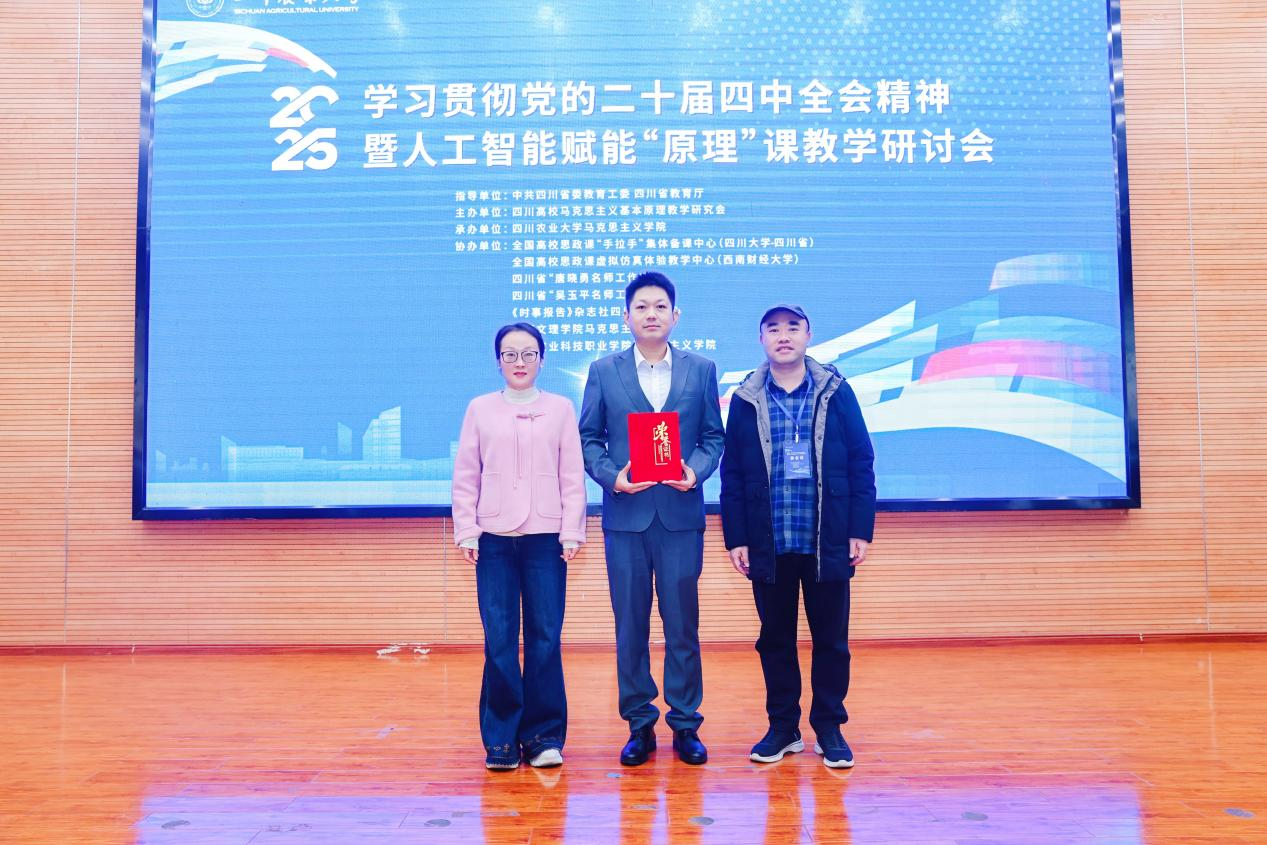11月29日,由四川高校马克思主义基本原理教学研究会主办,四川农业大学马克思主义学院承办,成都文理学院马克思主义学院、全国高校思政课“手拉手”集体备课中心(四川大学)、全国高校思政课虚拟仿真体验教学中心(西南财经大学)协办的以“学习贯彻党的二十届四中全会精神暨人工智能赋能‘原理’课教学”为主题的四川高校马克思主义基本原理教学研究会2025年年会在四川农业大学成功举办。来自全省近50所高校的教师及学生代表共计270余人参会。我院院长夏冰,马克思主义基本原理课程教研室副主任(主持工作)孙述娟以及学院教师李志远参加了此次会议。