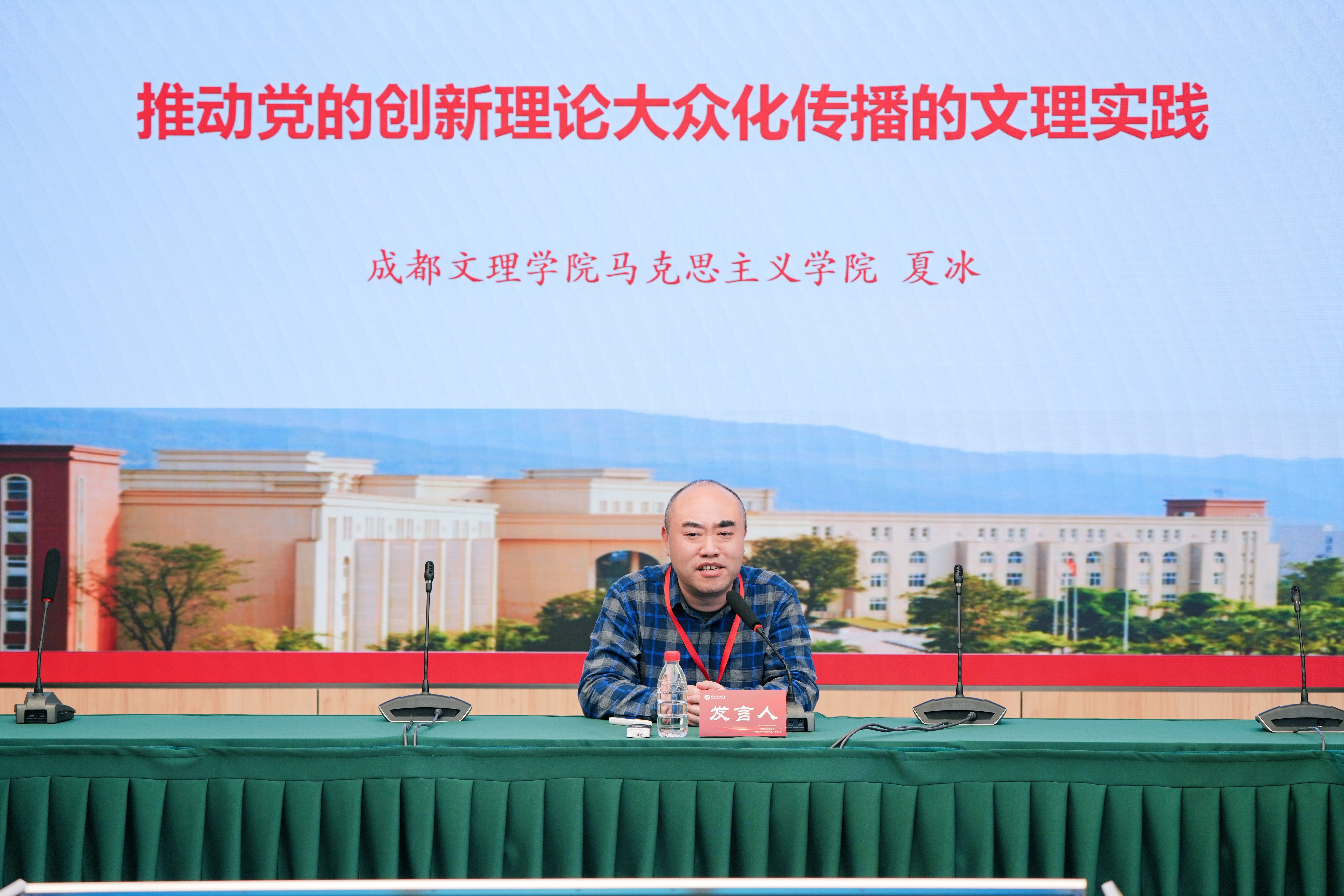 在分论坛环节,我院院长夏冰作了《党的创新理论大众化传播的文理实践》主题发言。发言内容紧扣学校实际,体现了在推进党的创新理论大众化传播中的思考与探索,展现了高校马克思主义学院在理论武装、立德树人方面的主动作为,引起并获得了与会各兄弟马院院长及专家学者们的关注和赞赏。