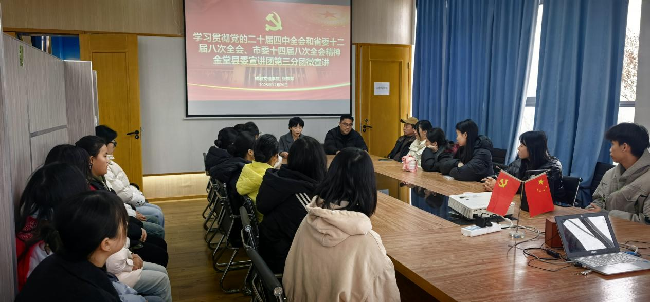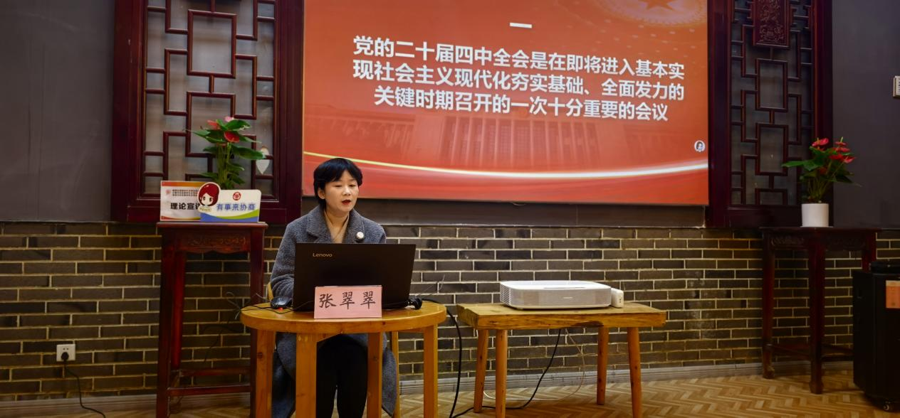 为切实发挥马克思主义理论学科的社会服务功能,推动党的创新理论深入基层、指导实践。12月26日,我院副教授、金堂县委宣讲团成员张翠翠赴金堂县栖贤街道及所辖社区,开展党的二十届四中全会及省、市全会精神系列宣讲活动,将学院的理论研究优势转化为服务地方发展的生动实践。