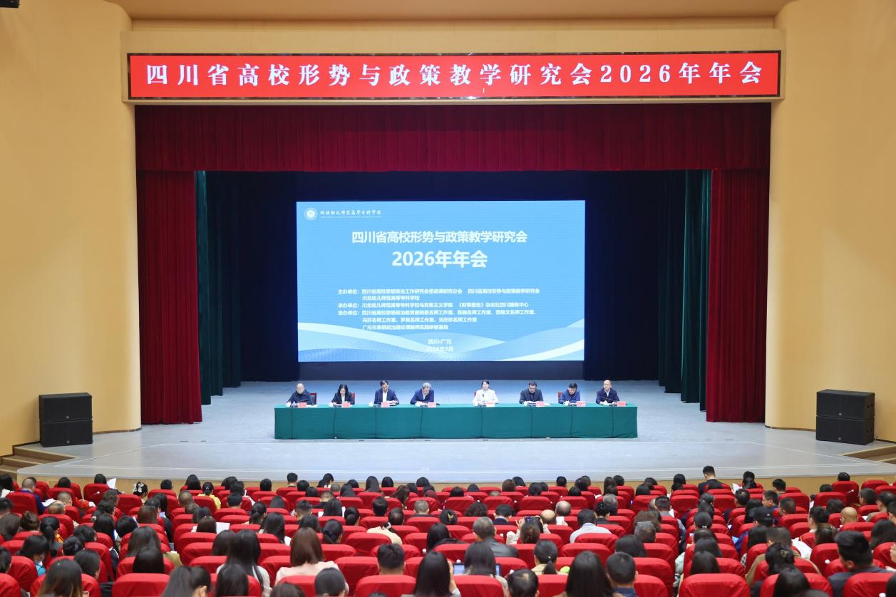 3月28日,四川省高校形势与政策教学研究会2026年年会在川北幼儿师范高等专科学校举行。会议由四川省高校思想政治工作研究会思政课研究分会、四川省高校形势与政策教学研究会、川北幼儿师范高等专科学校主办,川北幼儿师范高等专科学校马克思主义学院、《时事报告》杂志社四川服务中心承办。全省近100所高校马克思主义学院的领导、形势与政策课任课教师等300余人参加会议。